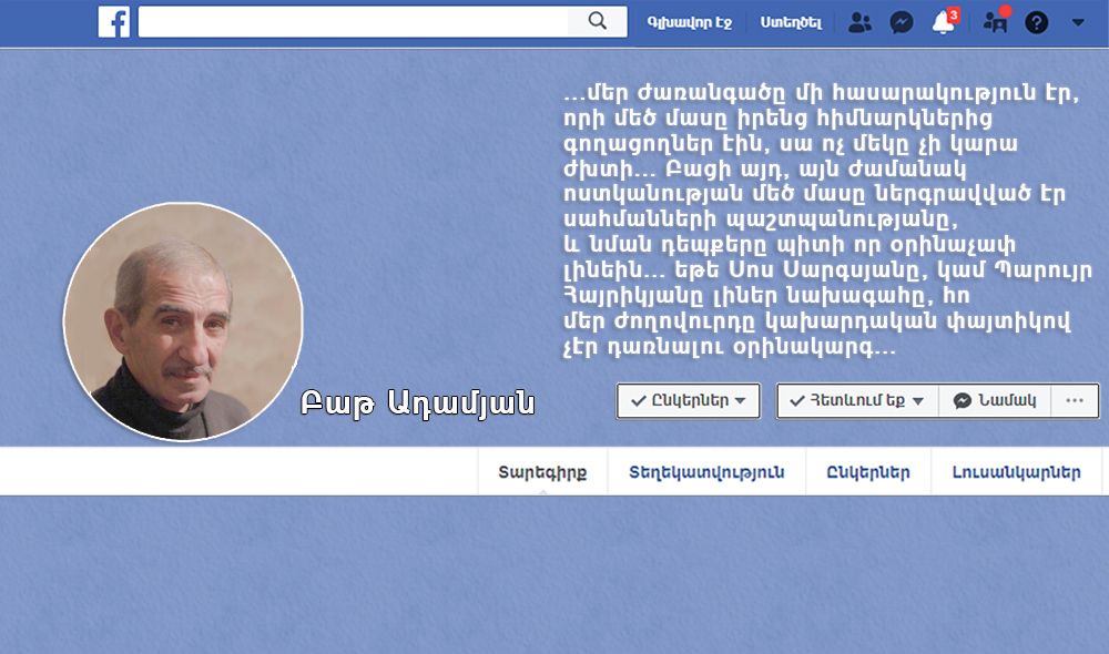 ...կարող է հիշեք նաև, որ այդ ժամանակ Սովետի բանկային համակարգը փլուզված էր, և առևտուրն արվում էր բարտերով, ու հենց դրանք փոխարինվում էին Պարսկաստանում, սննդով, վառելանյութով և երկրի կենսագործունեությունն ու պատերազմ մղելու կարիքները ապահովող այլ ապրանքներով, սակայն սրա հետ միաժամանակ եղել են նաև գործարանների սարքավորումների «ռասկուլաչիտներ», դե հո Սովետից մենք տենց մի օրինապաշտ հասարակություն չէին ժառանգել, մեր ժառանգածը մի հասարակություն էր, որի մեծ մասը իրենց հիմնարկներից գողացողներ էին, սա ոչ մեկը չի կարա ժխտի... Բացի այդ, այն ժամանակ ոստկանության մեծ մասը ներգրավված էր սահմանների պաշտպանությանը, և նման դեպքերը պիտի որ օրինաչափ լինեին... եթե Սոս Սարգսյանը, կամ Պարույր Հայրիկյանը լիներ նախագահը, հո մեր ժողովուրդը կախարդական փայտիկով չէր դառնալու օրինակարգ...